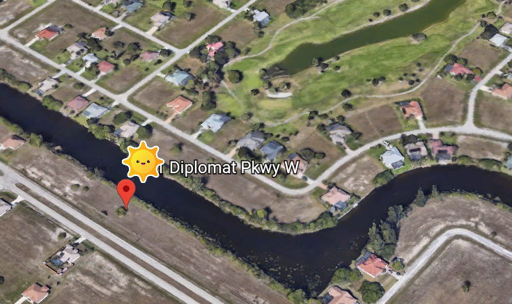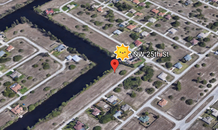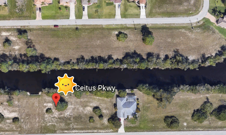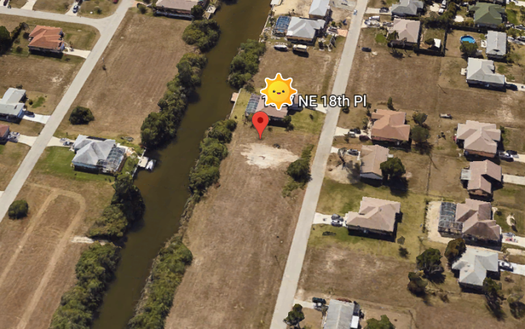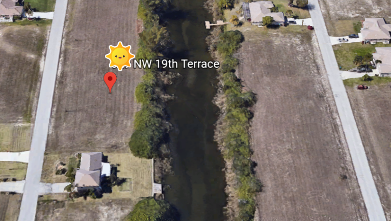 Terrain 1000m² au Nord Est de Cape Coral, belle situation, proche toutes commodités, bord de canal navigable eau douce, 1000 m² constructibles.