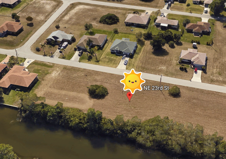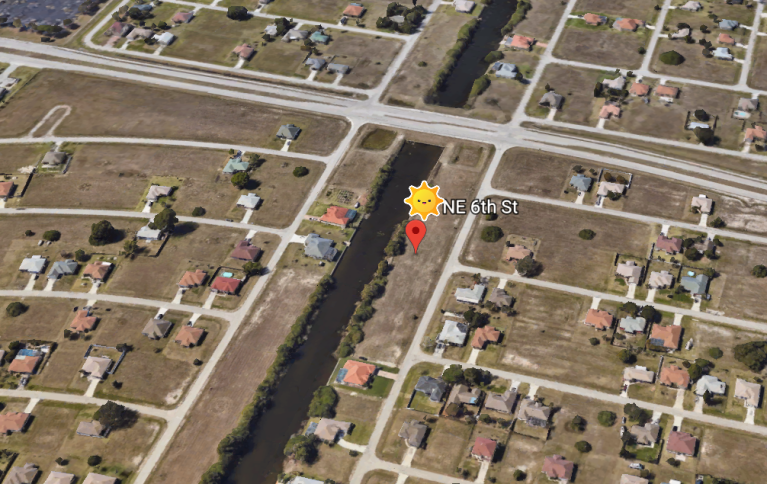 Terrain plat à Cape Coral, 1000m² constructible, zone de constructions récentes.