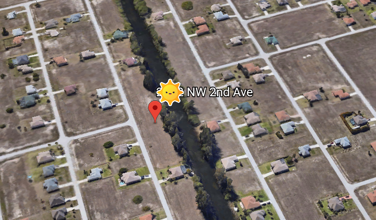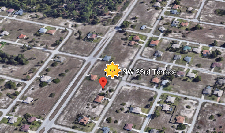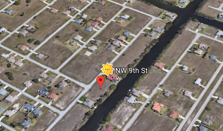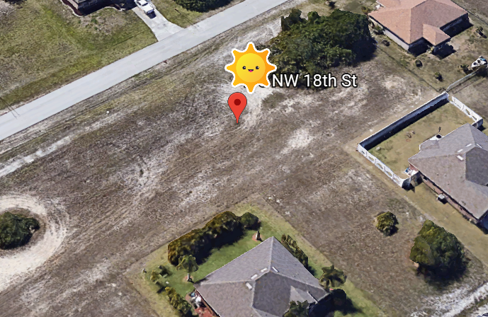 Terrain plat à Cape Coral, 1000m² constructible, zone de constructions récentes.