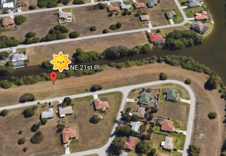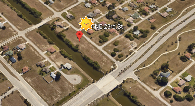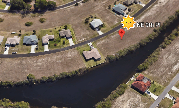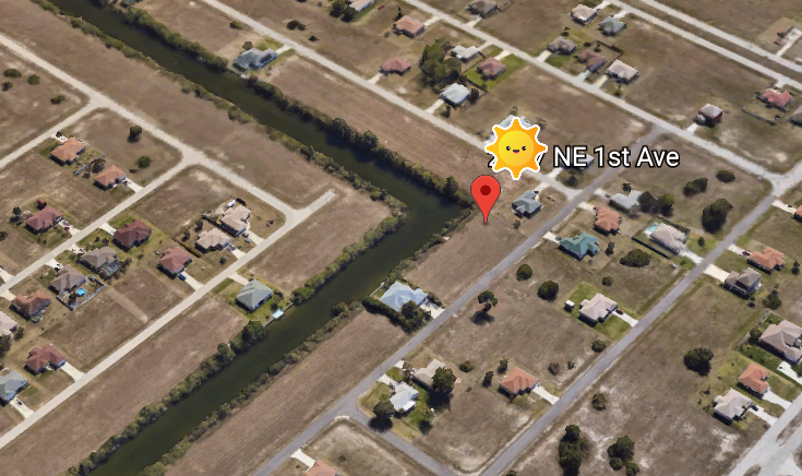 Terrain 1000m² au Nord Est de Cape Coral, belle situation, proche toutes commodités, bord de canal navigable eau douce, 1000 m² constructibles.